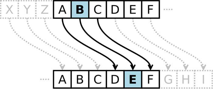 Le chiffrement de substitution est un exemple extrêmement simple de cryptographie conventionnelle. Il substitue une information par une autre. Cette opération s'effectue généralement en décalant les lettres de l'alphabet. Le code secret de Jules César est à la base de la cryptographie conventionnelle. Dans ce cas, l'algorithme constitue à décaler les lettres de l'alphabet et la clé correspond au nombre de caractères de décalage. Par exemple, si vous codez le mot « SECRET » à l'aide de la valeur 3 de la clé de César, l'alphabet est décalé de manière à commencer à la lettre D. Ainsi, l'alphabet ABCDEFGHIJKLMNOPQRSTUVWXYZ si vous décalez le début de 3 lettres, vous obtenez DEFGHIJKLMNOPQRSTUVWXYZABC où D = A, E = B, F = C, etc.